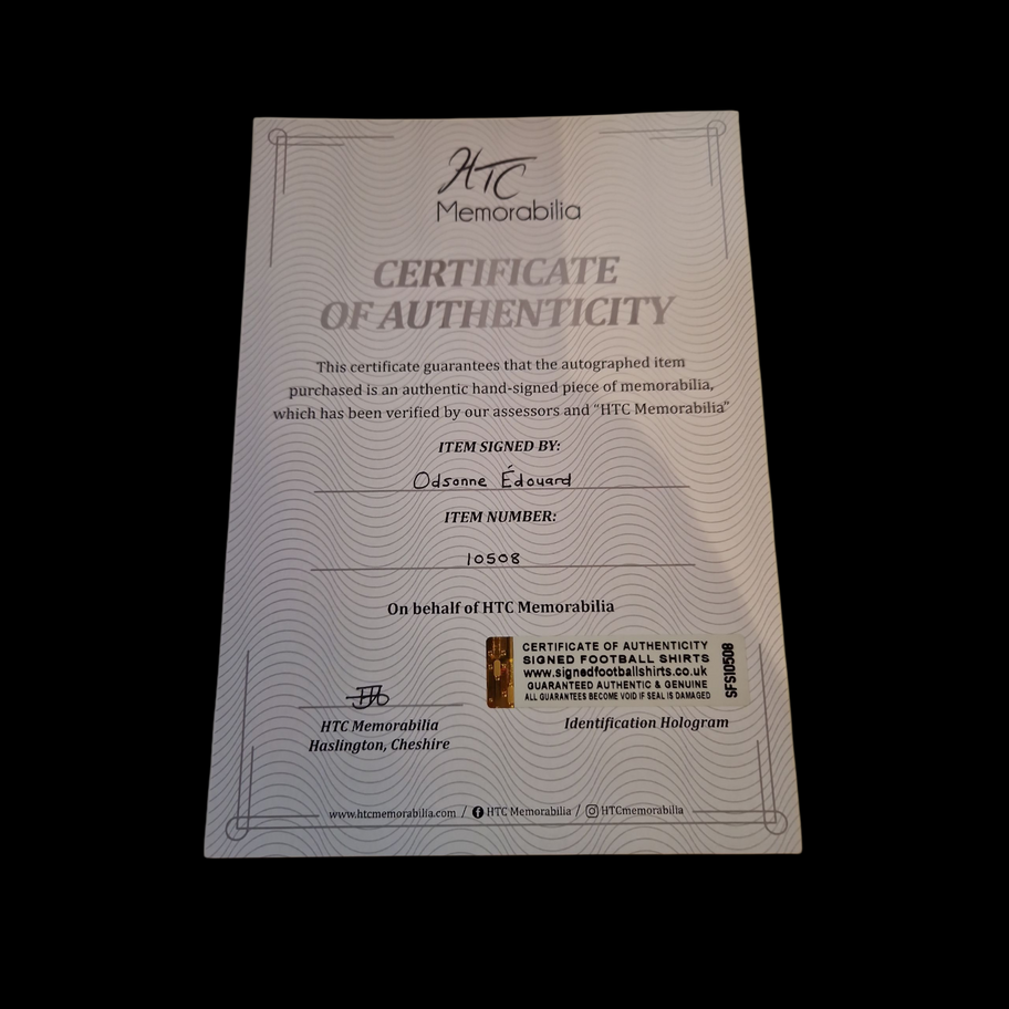 He made his debut on 11 September in a 3–0 victory over Tottenham Hotspur, when he came off the bench for Christian Benteke in the 84th minute and scored two goals, the first of which was the fastest debutant goal in Premier League history which he scored in just 28 seconds, this 12 x 8 picture was personally hand signed by Odsonne Edouard.